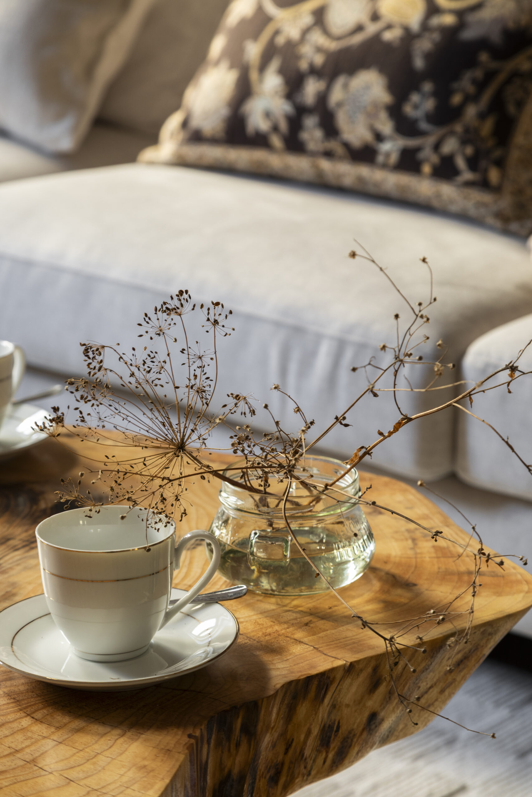 dla których uzupełnienie stanowią: inkrustowane meble podarowane niegdyś klientom przez rodzinę oraz minimalistyczne obrazy autorstwa Grzegorza Worpusa.